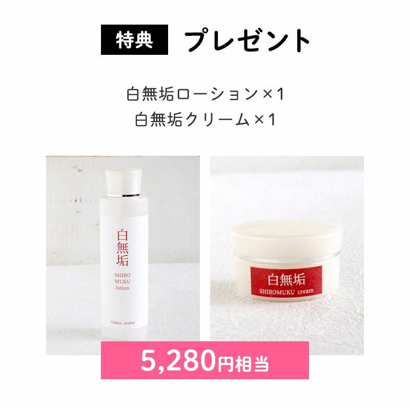 すっきりしたあとは、しっかり保湿してほしいので、プレゼントで白無垢ローションとクリームをプレゼント♪