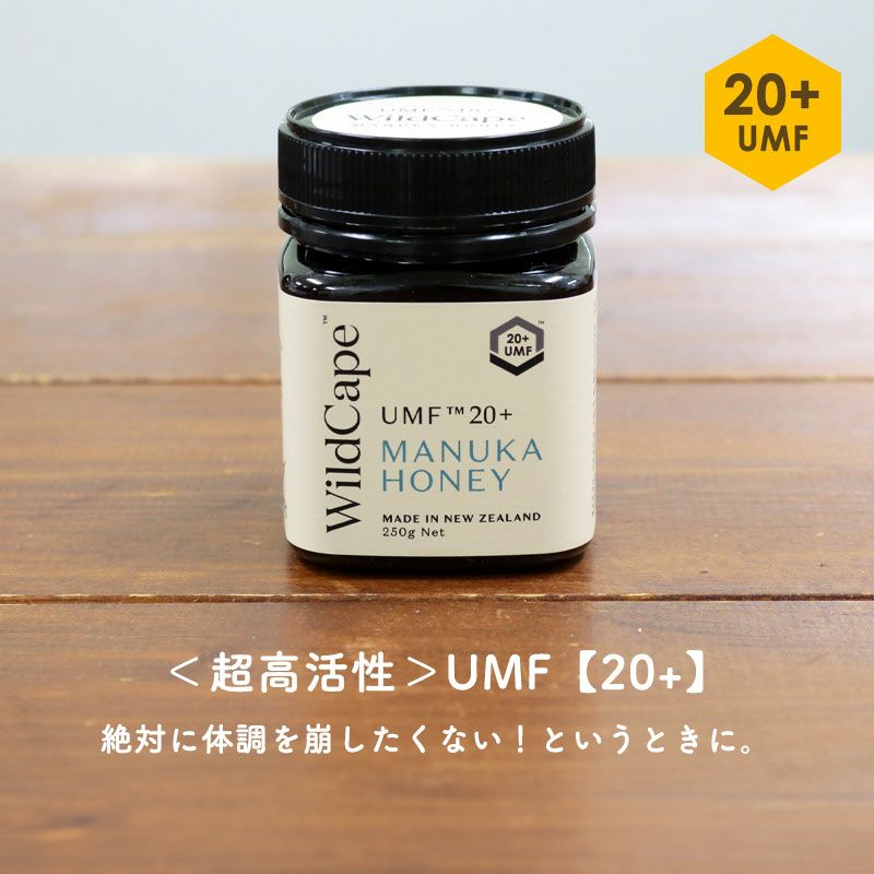 商品詳細 セット内容 ・マヌカハニー<中活性>UMF【10+】500g×1 ・マヌカハニー<高活性>UMF【15+】500g×1 ・マヌカハニー<超高活性>UMF【20+】250g×1 ・マヌカハニー<中活性>UMF【10+】携帯用(5g×20本入)×2 特典 会員割引 4,286円OFF 通常価格(税込)44,086円のところ、会員様は39,800円でお求めいただけます。(4,286円相当) すでに会員登録がお済の方はログインして、まだの方は新規会員登録をしてご利用くださいませ。 ポイントアップ ポイント10倍 商品本体価格(税抜価格)の10%分をポイント還元させていただきます!(3,685円相当※) ※ただし、各種割引(会員割引、クーポン割引、ポイント割引)利用分にポイントは付きません。 インフォメーション 成分 天然マヌカ蜂蜜100% <栄養成分表示(100g当たり)> エネルギー:327kcal 炭水化物:80g タンパク質:1g未満 食塩相当量:0.03g 脂質:0.1g未満 賞味期限 中活性マヌカハニー UMF【10+】 (500g):2029年11月17日 高活性マヌカハニー UMF【15+】 (500g):2029年8月25日 高活性マヌカハニー UMF【20+】 (250g):2030年3月8日 携帯用マヌカハニー<中活性>UMF【10+】 2028年7月28日 内容量 10+、15+:500g / 20+:250g / 携帯用マヌカハニー:5g×20個 原産国 ニュージーランド 製造元:Savage Horticulture 分析証明書について ペーパーレス化の観点から、分析証明書はお付けしておりません。 お手元のマヌカハニーに記載されているバッチナンバーから、分析証明書をご確認いただけます。 分析証明書はこちら ギフトなどで紙の分析表を同封希望の場合は、ご注文時備考欄にてお申し出頂ければご対応させていただきます。 注意事項 内蓋のシーリングが弱くなり、開封時に外蓋の裏側についている場合があります。 外蓋がしっかり閉まっていれば、品質的に問題ございません。予めご了承くださいませ。 普通の蜂蜜同様、1歳未満の乳児には与えないでください。 まれに蜂蜜に含まれるボツリヌス菌により、お腹の中の有益な細菌が不十分な1歳未満の乳児は乳児ボツリヌス症になる恐れがあるためです。 蜂蜜以外にもコーンシロップや野菜ジュースなども可能性がある食品です。 尚、授乳中のお母様、1歳以上のお子さんはマヌカハニーを食べていただいて問題ありません。 ワイルドケープ社のマヌカハニーは、採取したままの非加熱のはちみつです。 そのため、時間の経過や温度の変化により発酵して、泡が出たり、容器からあふれる可能性がございます。 これは「生きているはちみつ」である証拠でもあり、問題なく食べることができるのですが、できるだけ涼しい場所で保管をお願い致します。 返品条件 お客様都合による返品は、商品お届け後1週間以内、未使用の場合のみとさせていただきます。 詳しくはこちら