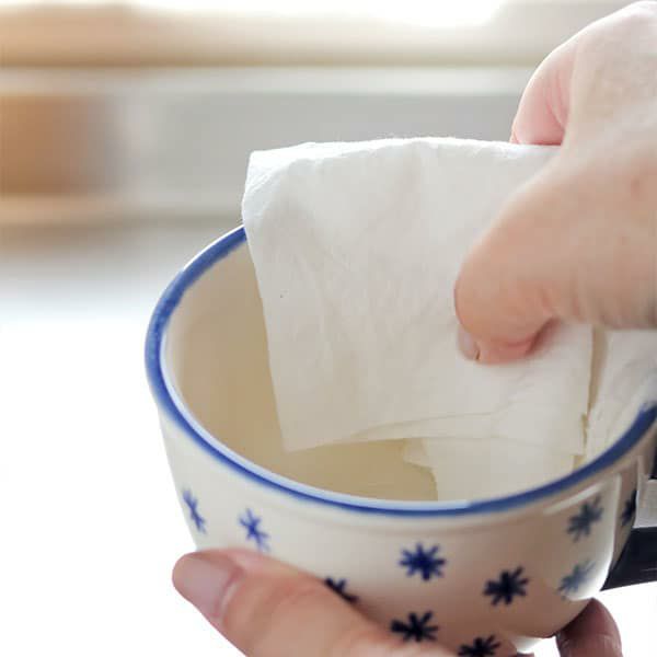 さらしで食器を拭くと、毛羽がつきません!