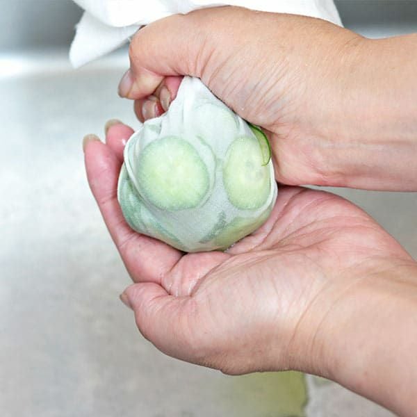 塩もみをしたあとのきゅうりは、さらしで包んでぎゅっと絞れば、しっかり水が切れます。