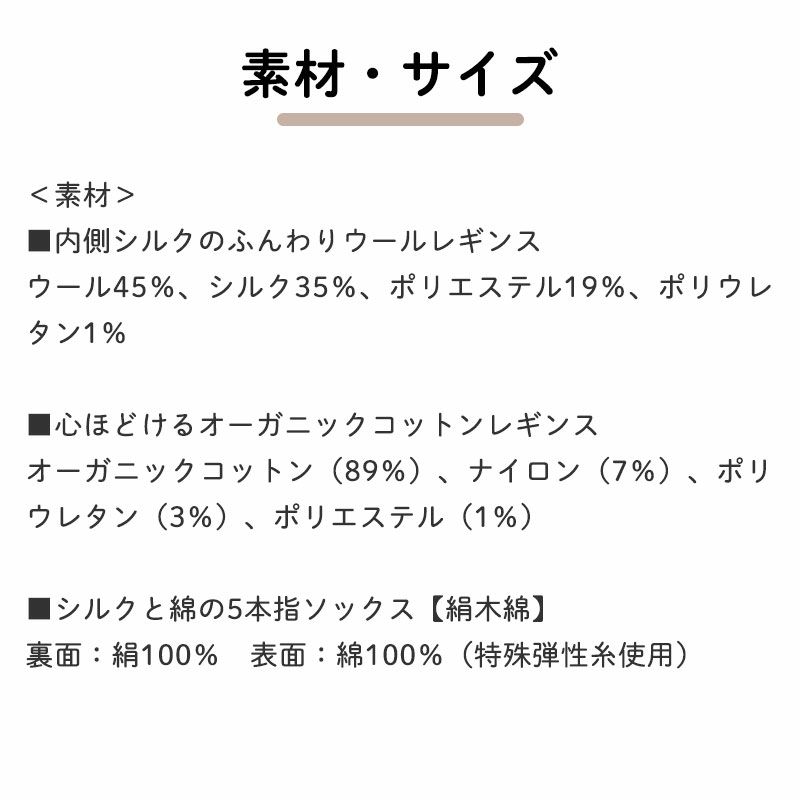 しかも!レギンスは足先がないので、「シルクと綿の5本指ソックス【絹木綿】」のプレゼント付き♪